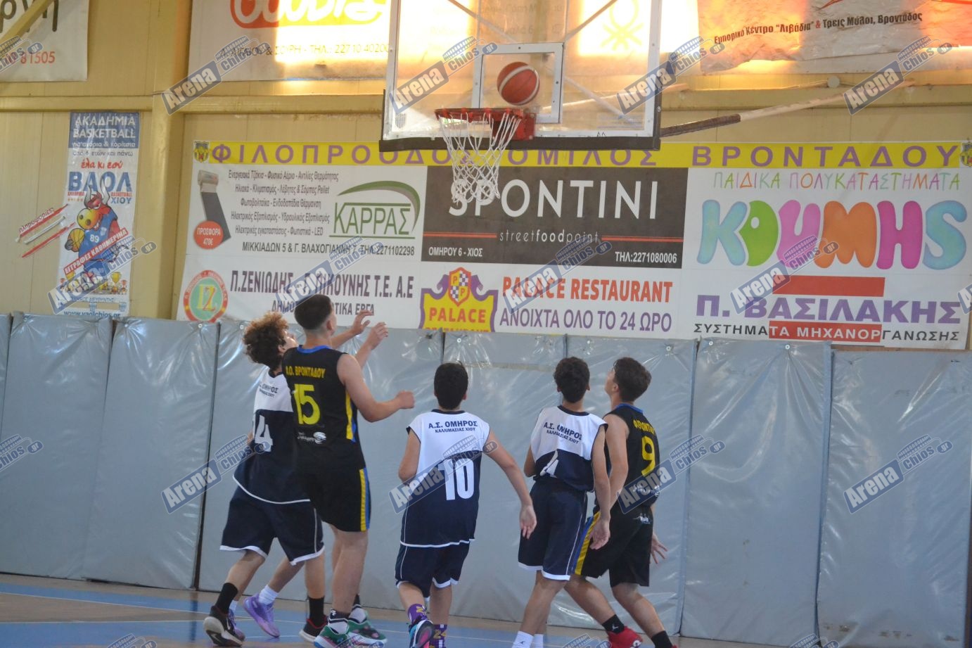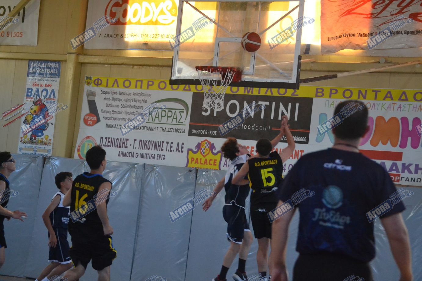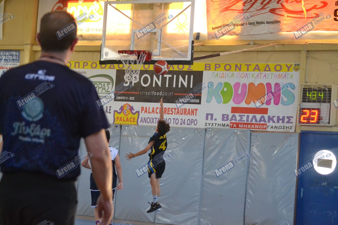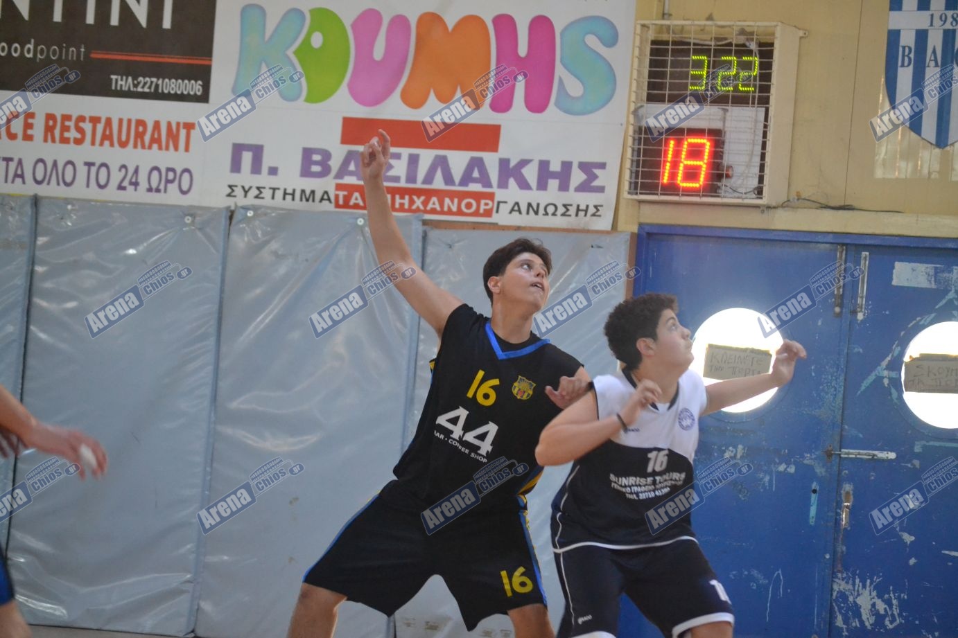 Στο Κλειστό στο Βούρειο διεξήχθη ο αγώνας των δύο ομάδων το απόγευμα της Τετάρτης (21/05), με το τοπικό πρωτάθλημα των Παμπαίδων στο νησί της Χίου να συνεχίζεται.