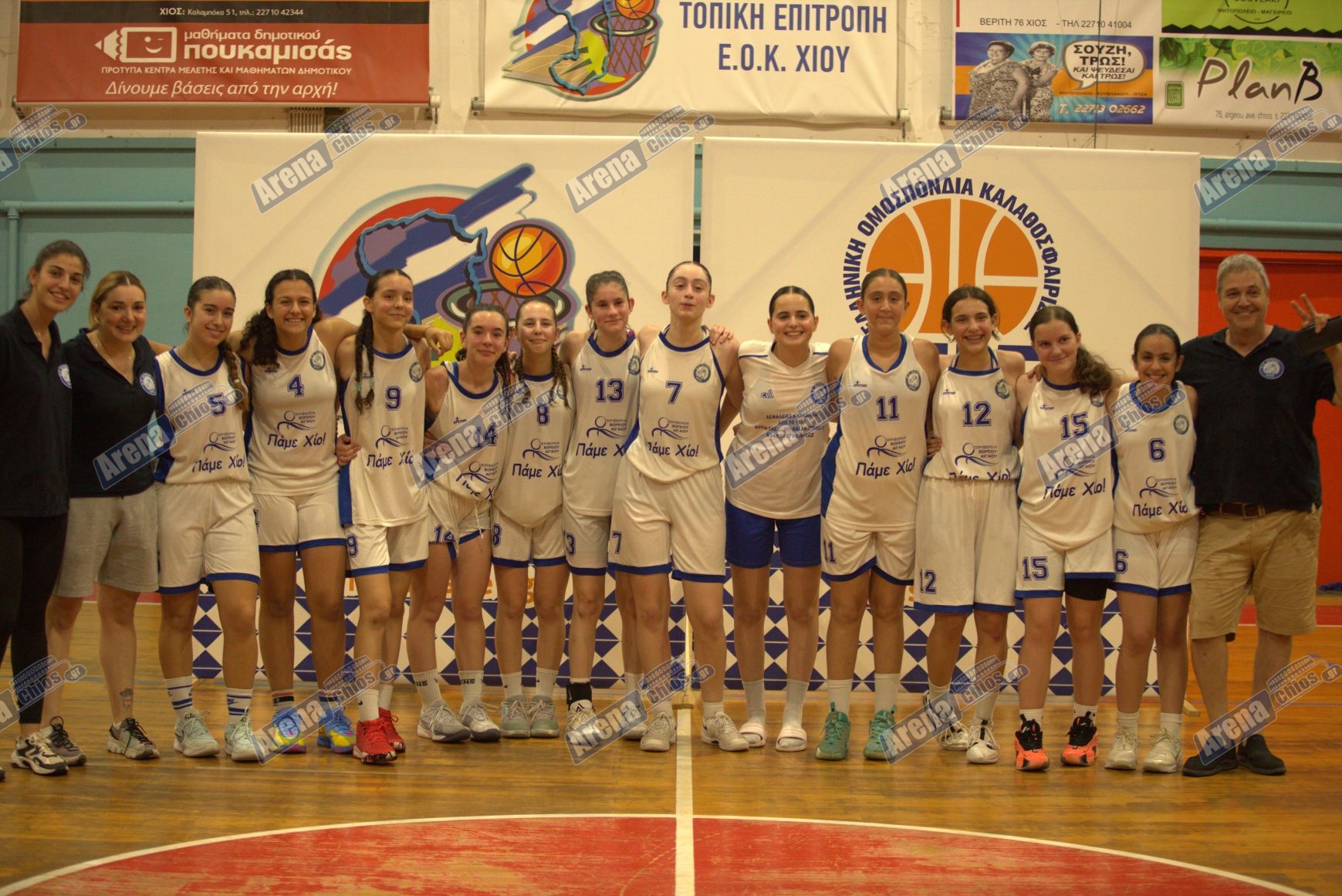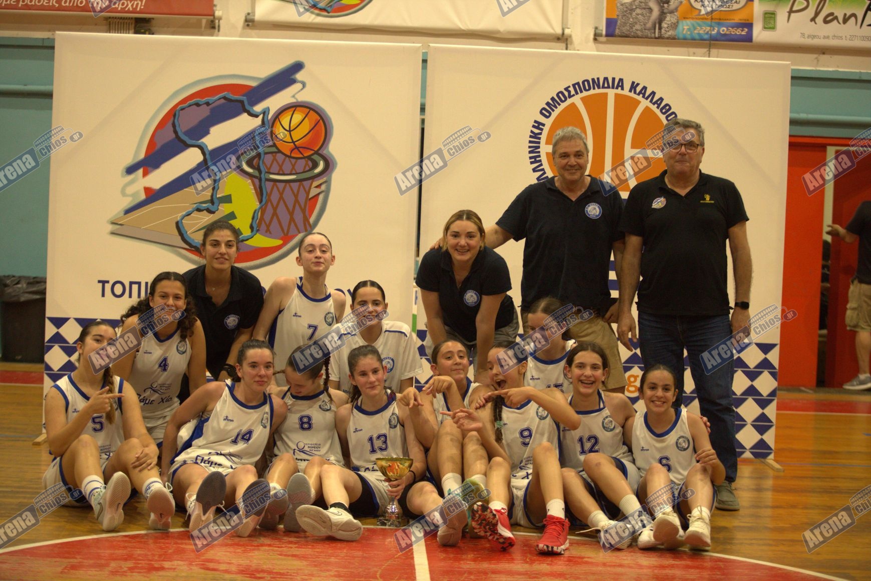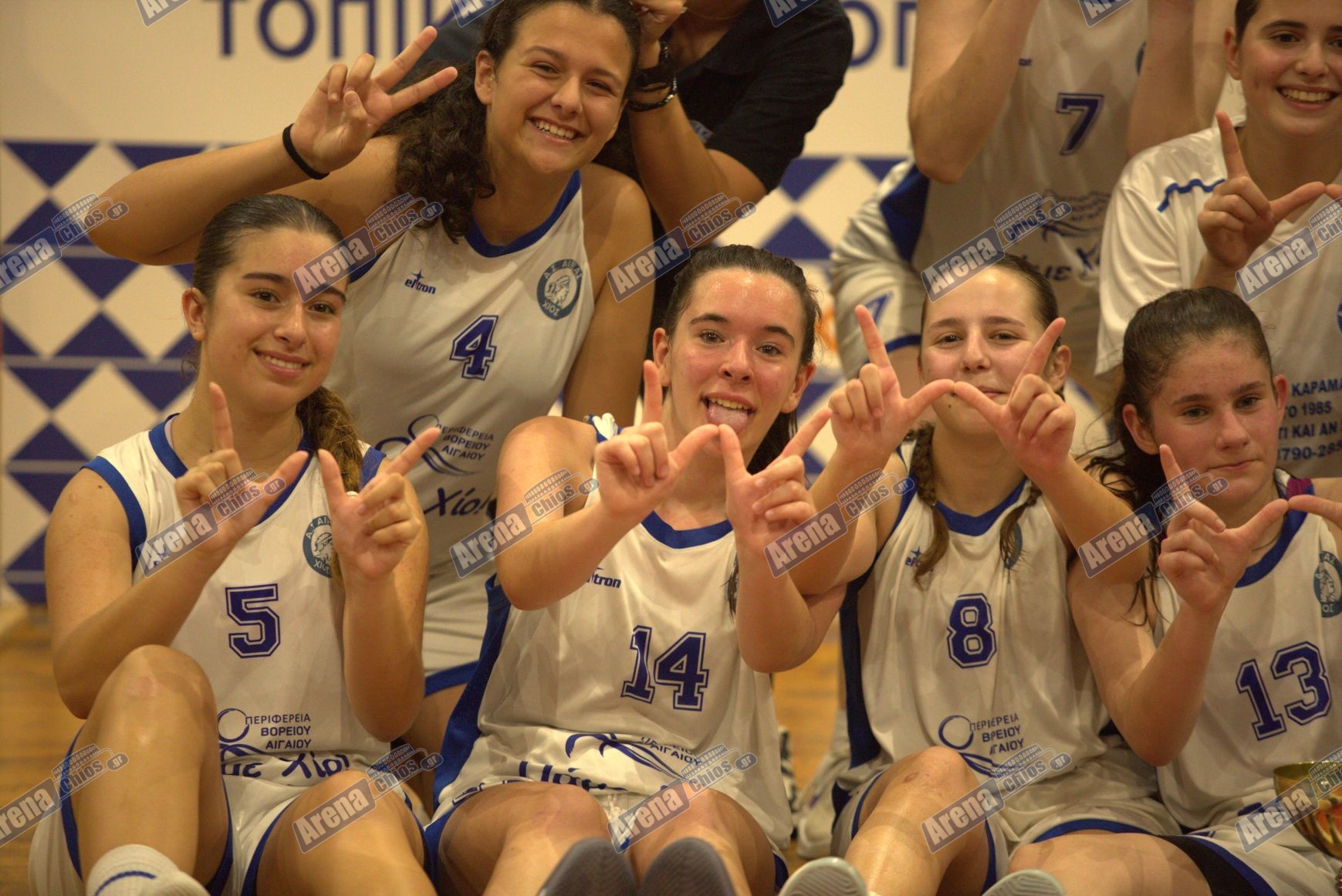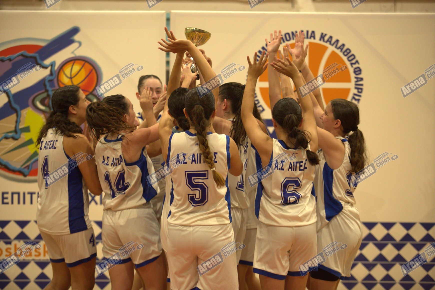 Μετά το τέλος του αγώνα στο Κλειστό γυμναστήριο της Χίου, ακολούθησε η απονομή του τίτλου στη πρωταθλήτρια ομάδα του Αιγέα στο τμήμα των Παγκορασίδων.