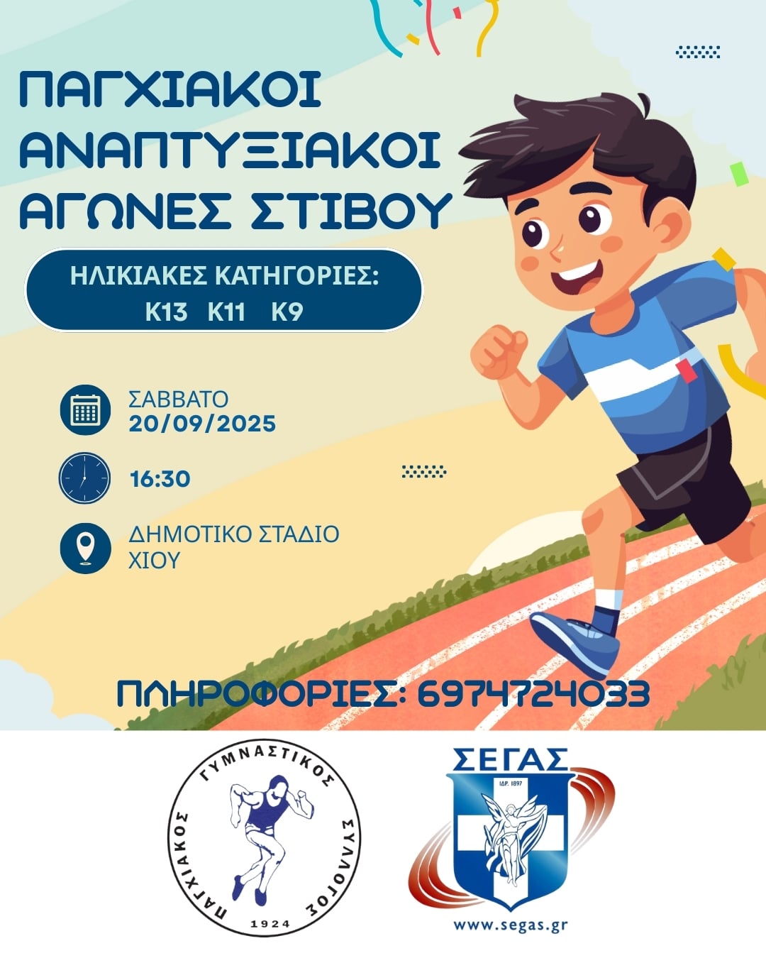 Το Σάββατο 20 Σεπτεμβρίου θα διεξαχθούν στο Στάδιο της Χίου οι Παγχιακοί αναπτυξιακοί αγώνες Στίβου.