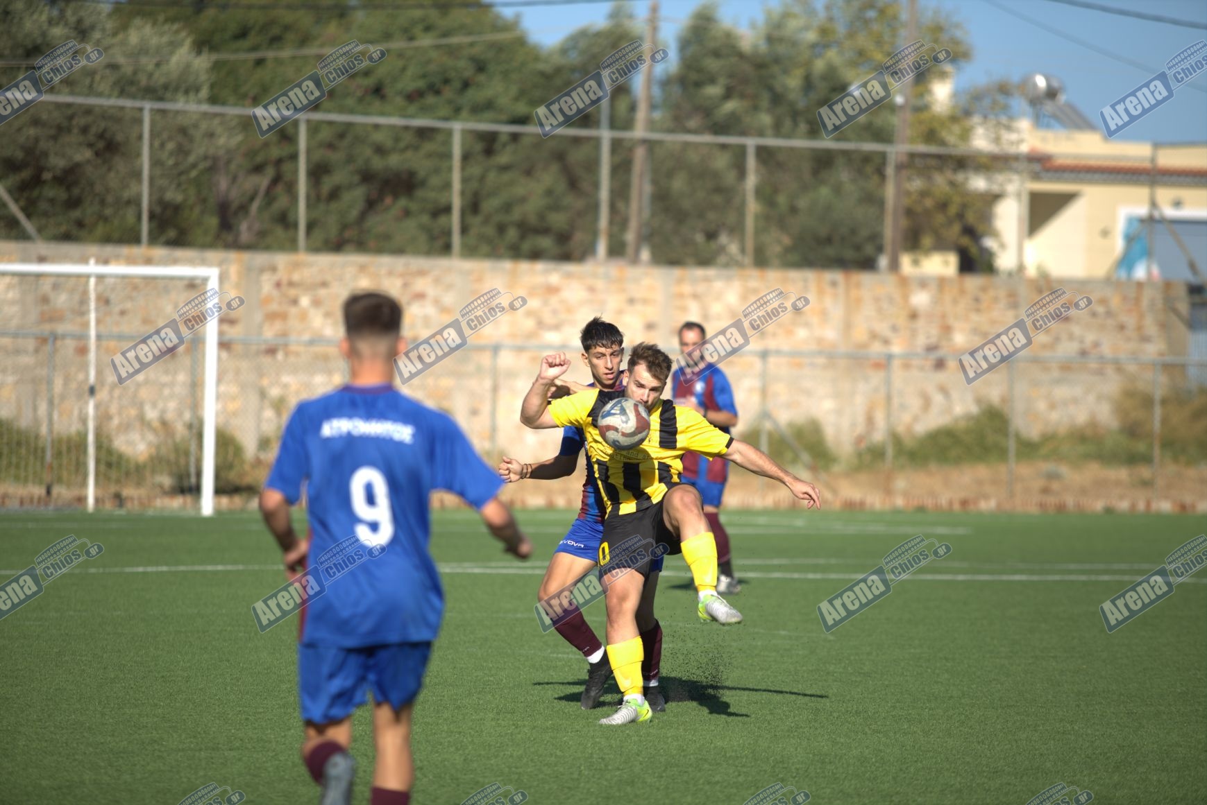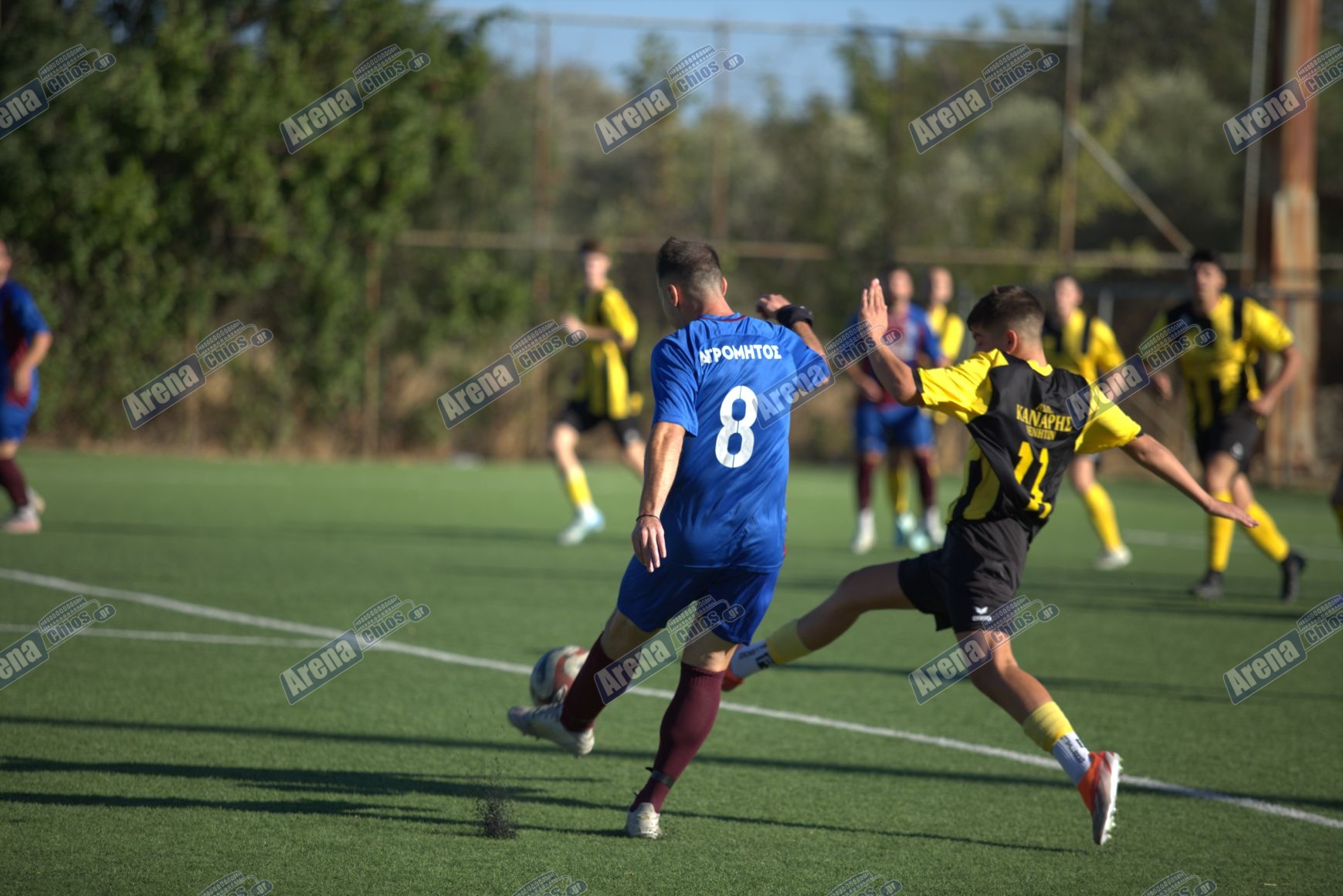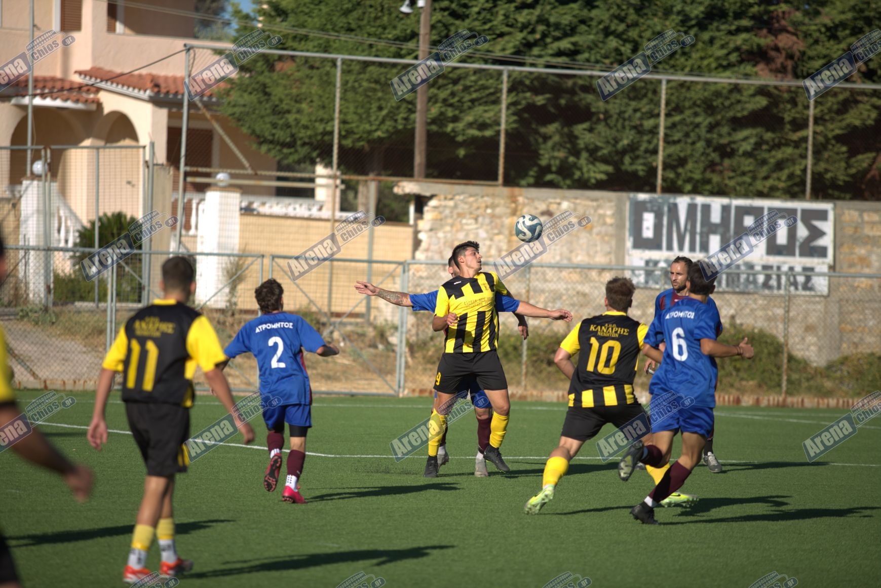 Λίγο πριν εκπνεύσει το πρώτο ημίχρονο και στο 35′, ο Ανδρέας Μαρινάκης εκμεταλλεύτηκε το λάθος της άμυνας του Κανάρη, βρέθηκε μέσα στην αντίπαλη περιοχή και πλάσαρε για το 0 – 2 που ήταν και το σκορ ημιχρόνου.