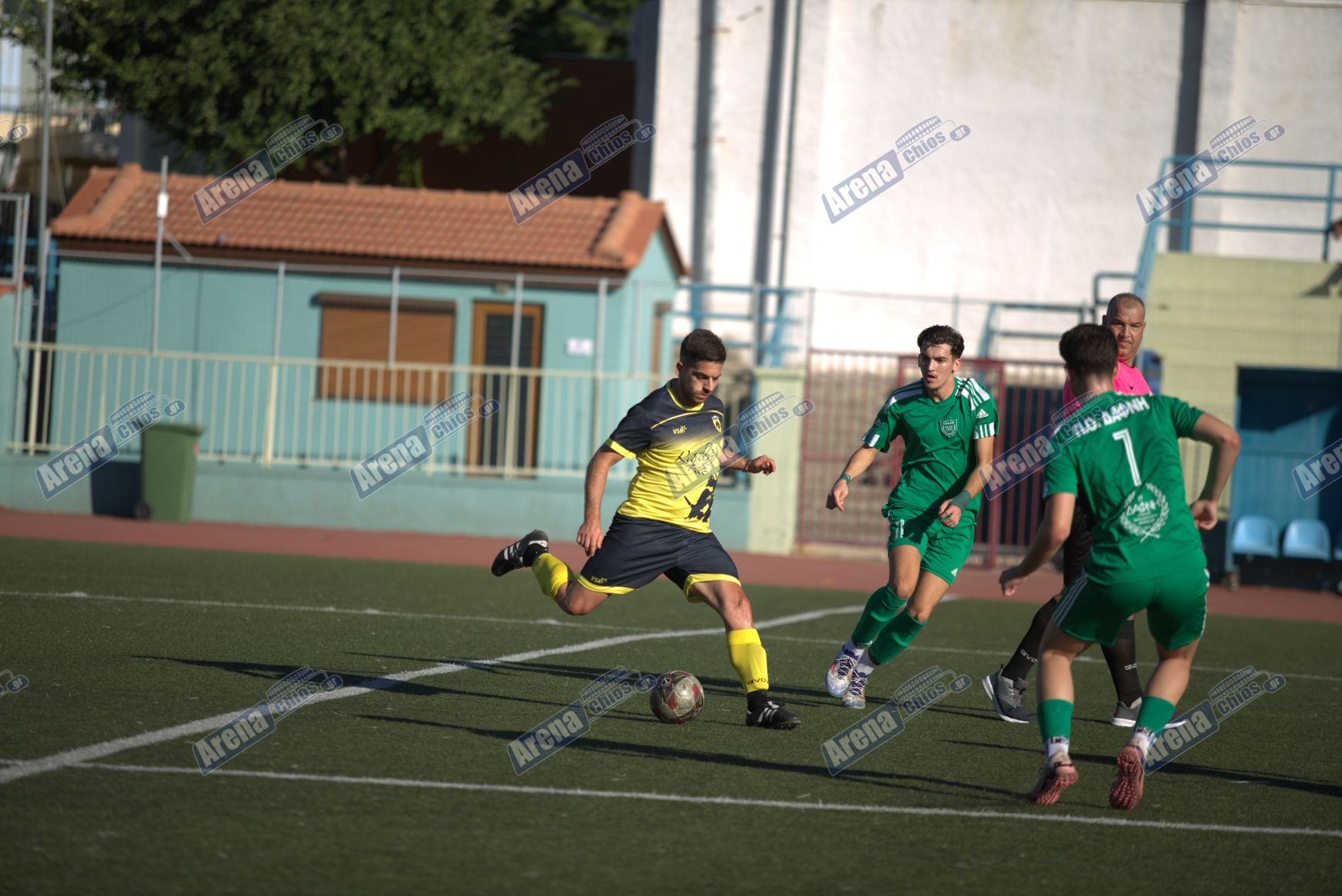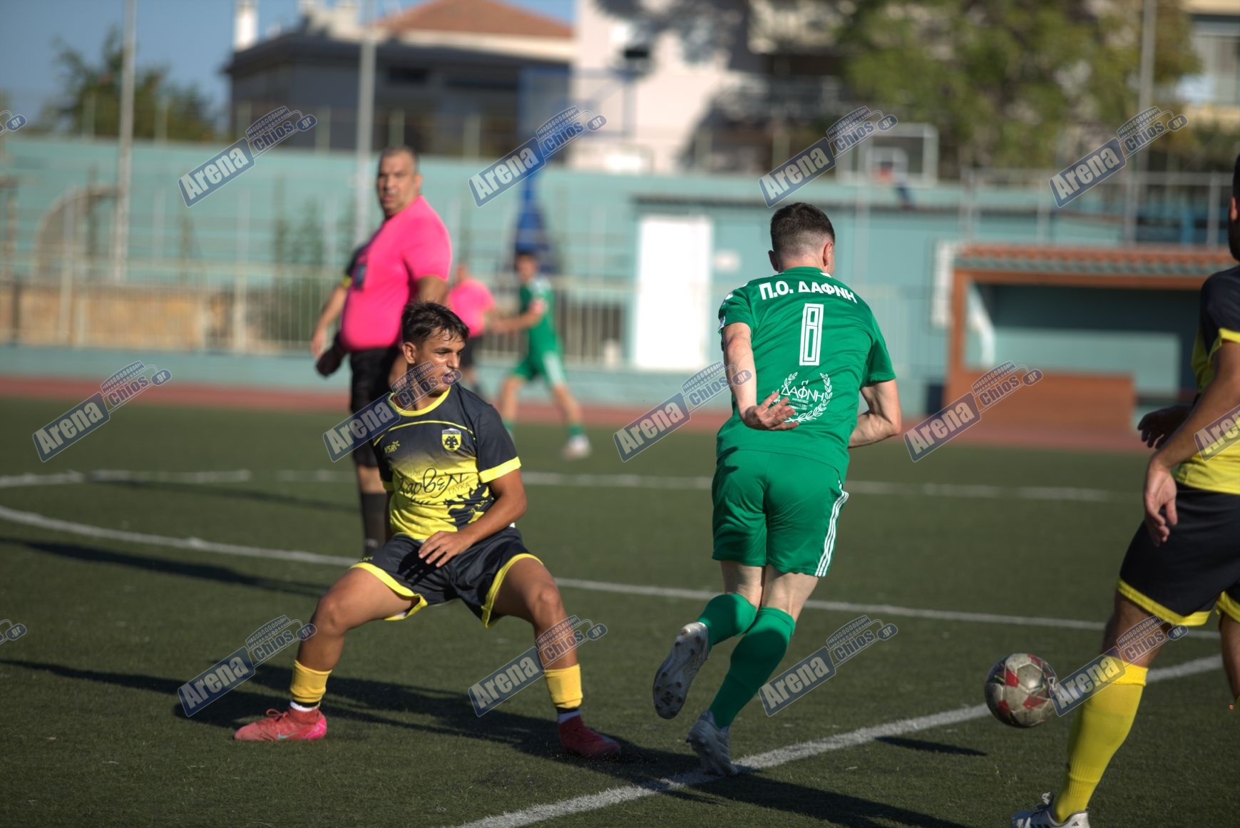 Στα του αγώνα, στο 25ο λεπτό ο Δημήτρης Καπός έβαλε τη Δάφνη μπροστά στο σκορ με κεφαλιά από εκτέλεση κόρνερ του Άρη Τζαφέρρι, ενώ δύο λεπτά μετά, ο Καπός χρίστηκε και πάλι σκόρερ με εύστοχη εκτέλεση πέναλτι που κέρδισε ο Αποστόλης Καλαντζής.