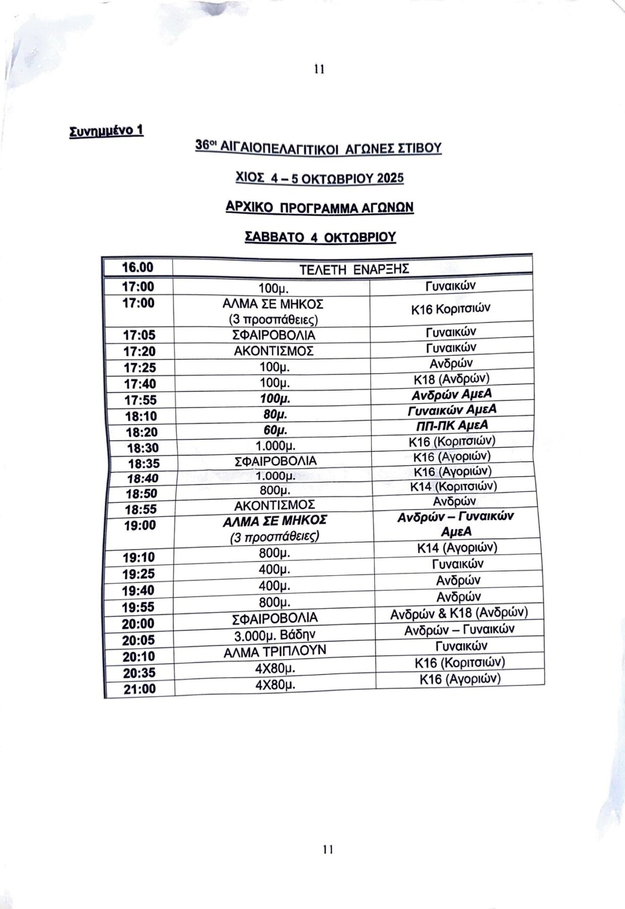 Το πρόγραμμα αγώνων στους 36ους Αιγαιοπελαγίτικους Αγώνες Στίβου–Χίος 2025!