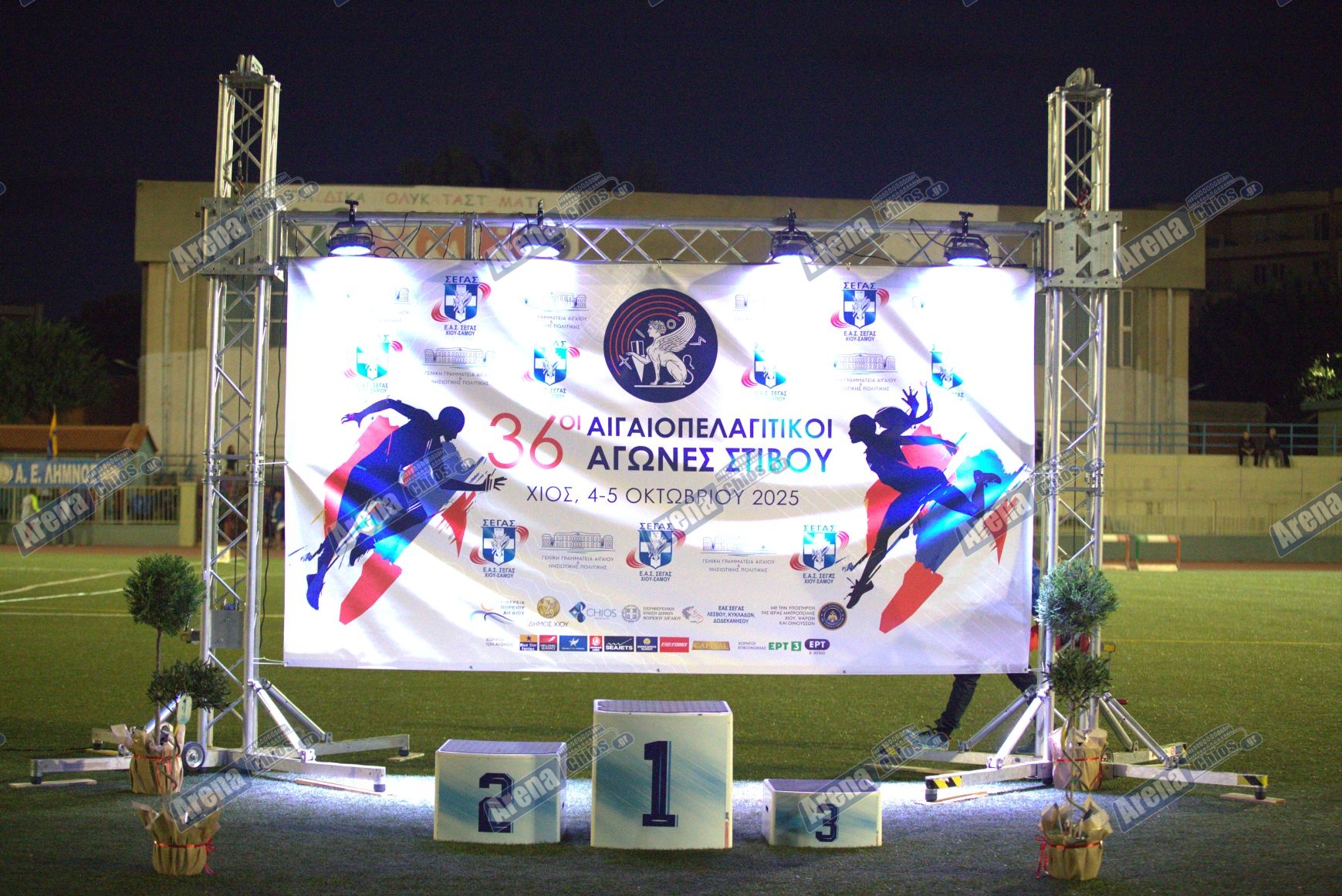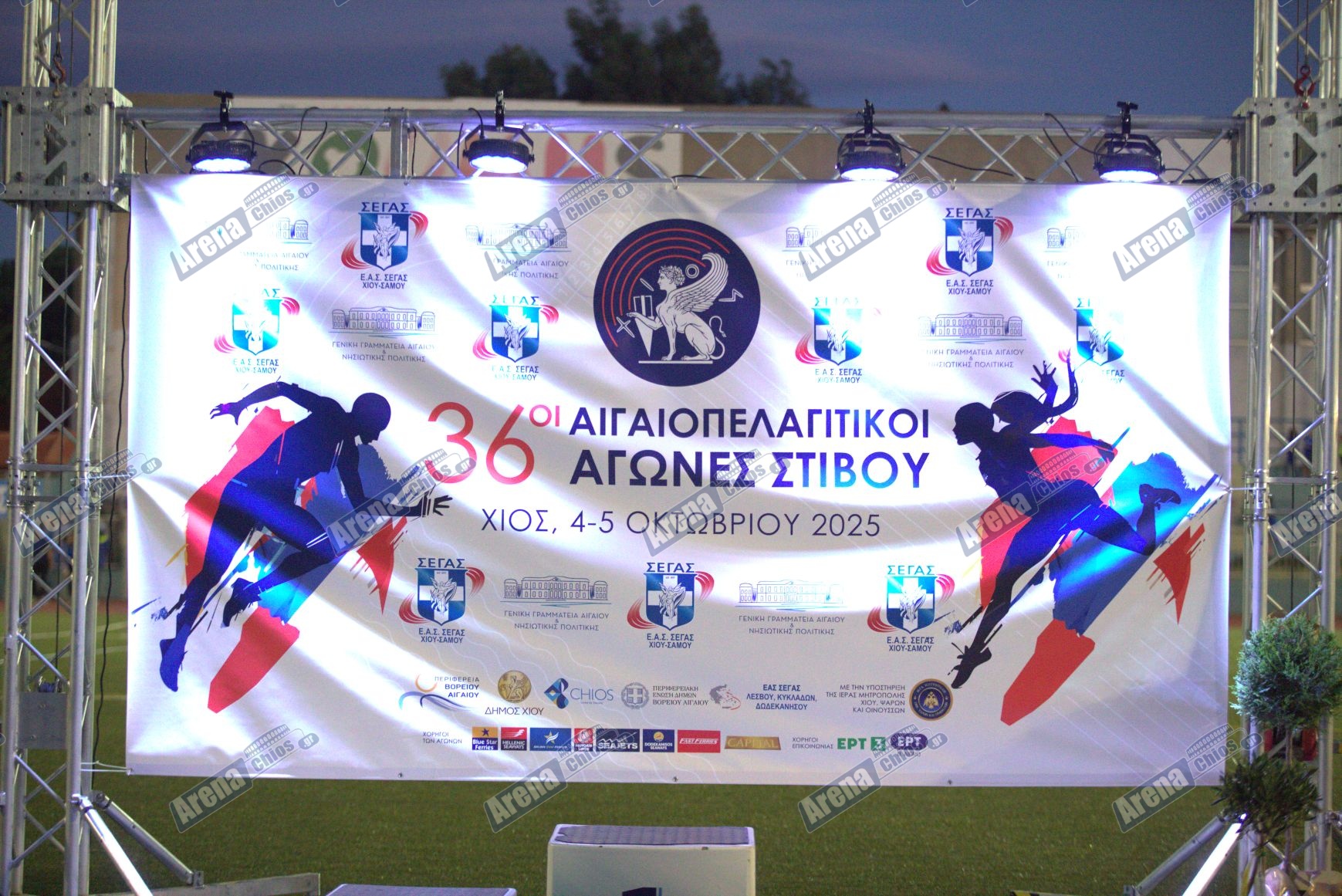 Η εκκίνηση στους 36ους Αιγαιοπελαγίτικους Αγώνες δόθηκε το Σάββατο 4 Οκτωβρίου στο Δημοτικό Στάδιο Χίου «Λεωνίδας Μίχαλος» με τη συμμετοχή 550 αθλητών και αθλητριών από 36 νησιωτικά σωματεία, μεταξύ των οποίων και πολλά μέλη των εθνικών ομάδων όλων των κατηγοριών.
