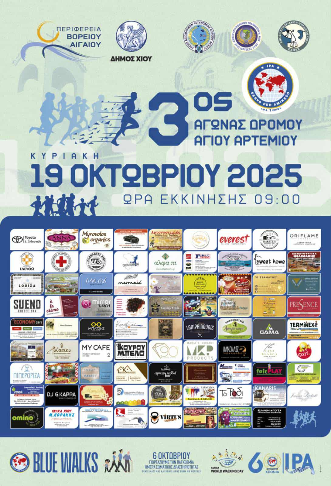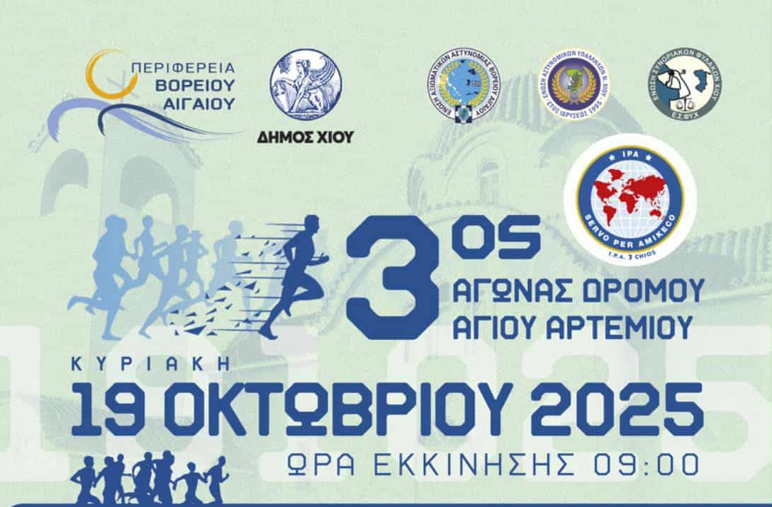 Την ερχόμενη Κυριακή 19 Οκτωβρίου θα διεξαχθεί ο 3ος Αγώνας Δρόμου Αγίου Αρτεμίου.