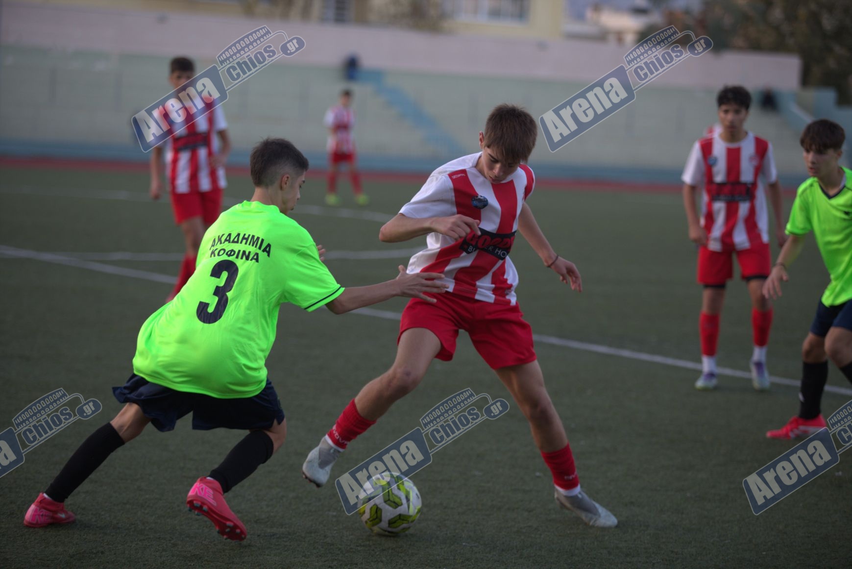 Νίκη που ήρθε με ανατροπή του σκορ πέτυχε απέναντι στην Ακαδημία Κοφινά/Αναγέννηση ο Ολυμπιακός Χίου/Κλασσικό στο Δημοτικό Στάδιο της Χίου.