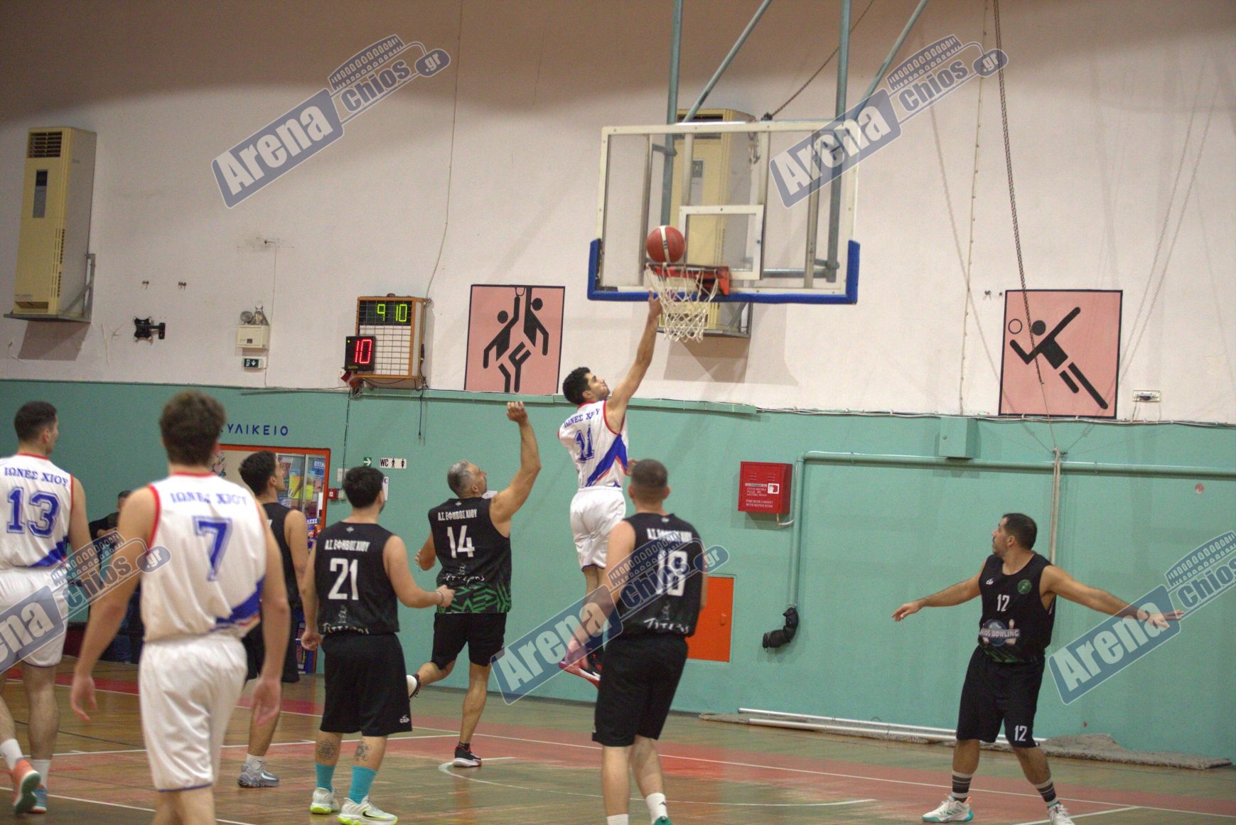 Το τελικό αποτέλεσμα βρήκε νικητές τους Ίωνες με σκορ, 57 – 60, παιχνίδι που έγινε στο πλαίσιο της 4ης αγωνιστικής του πρωταθλήματος μπάσκετ Ανδρών της Χίου που είναι χωρίς βαθμολογία.