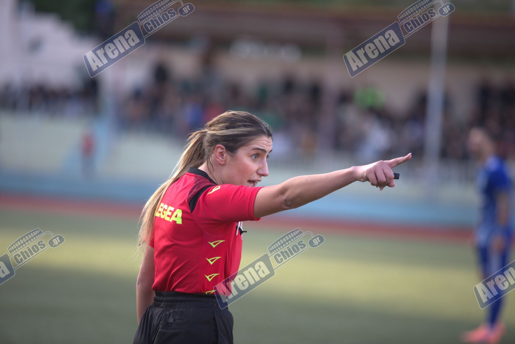 Εξαιρετική ήταν η διαιτησία της Αγγελικής Κατσάλα στο ντέρμπι της 8ης αγωνιστικής το απόγευμα του Σαββάτου στο Δημοτικό Στάδιο της Χίου.