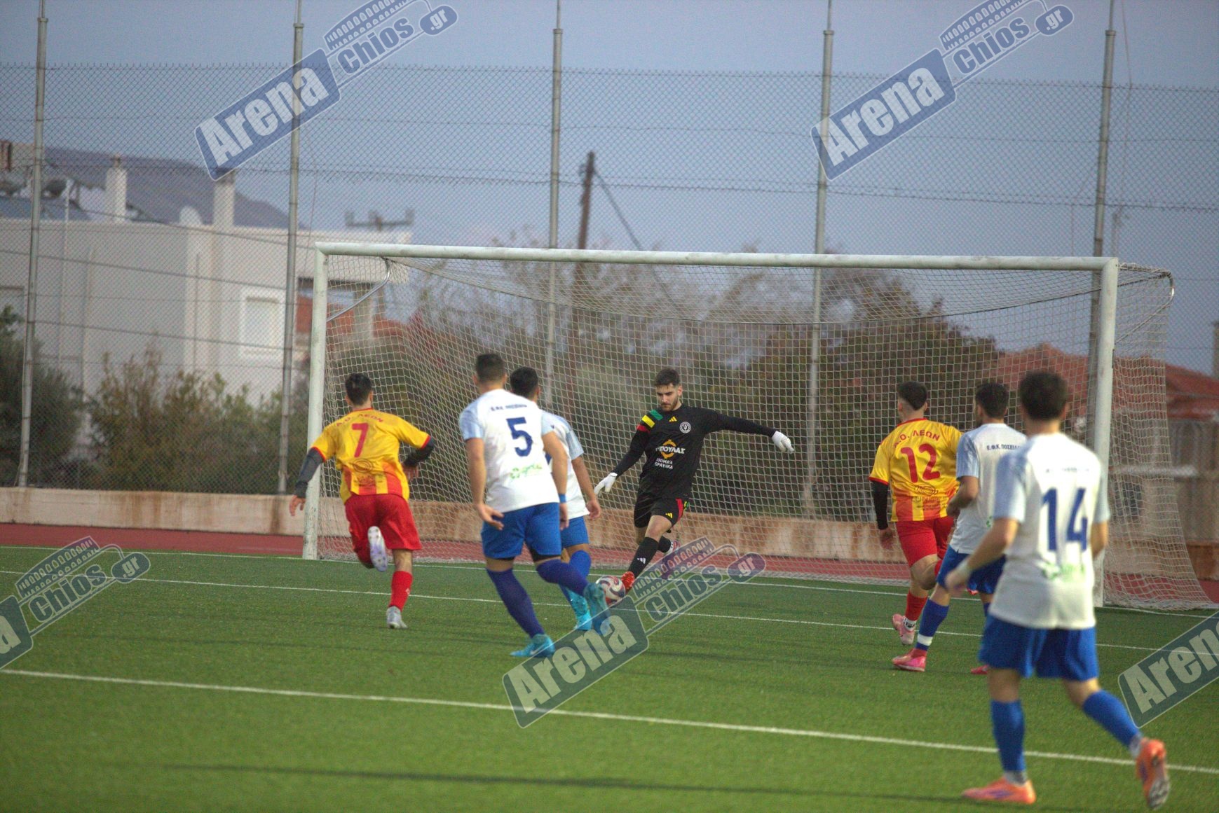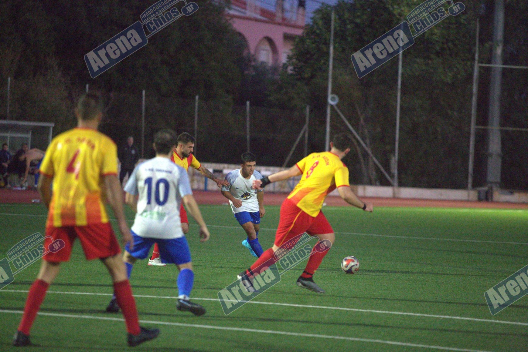 Στον αντίποδα, η ομάδα του Μιχάλη Στάθη ευχαριστήθηκε το παιχνίδι με μία εκ των δύο μεγάλων φαβορί για τη κατάκτηση του πρωταθλήματος της Α’ ΕΠΣ Χίου και διεκδικήτρια για την άνοδο στη Γ’ Εθνική κατηγορία.