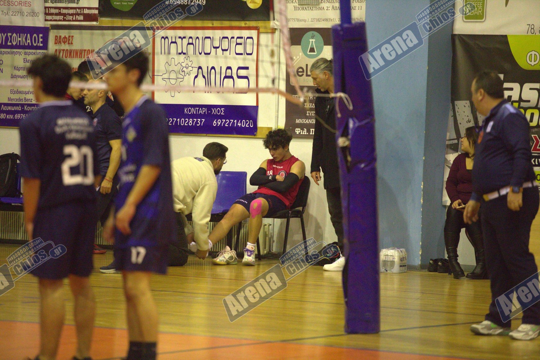 Στο Κλειστό Γυμναστήριο των Καμποχώρων ο ΦΟΚ φιλοξένησε την ομάδα της Μυτιλήνης στο πρωτάθλημα Εφήβων και ο Παναγιώτης Μοριανός τραυματίστηκε αρκετά νωρίς στον αγώνα και το πρώτο σετ.