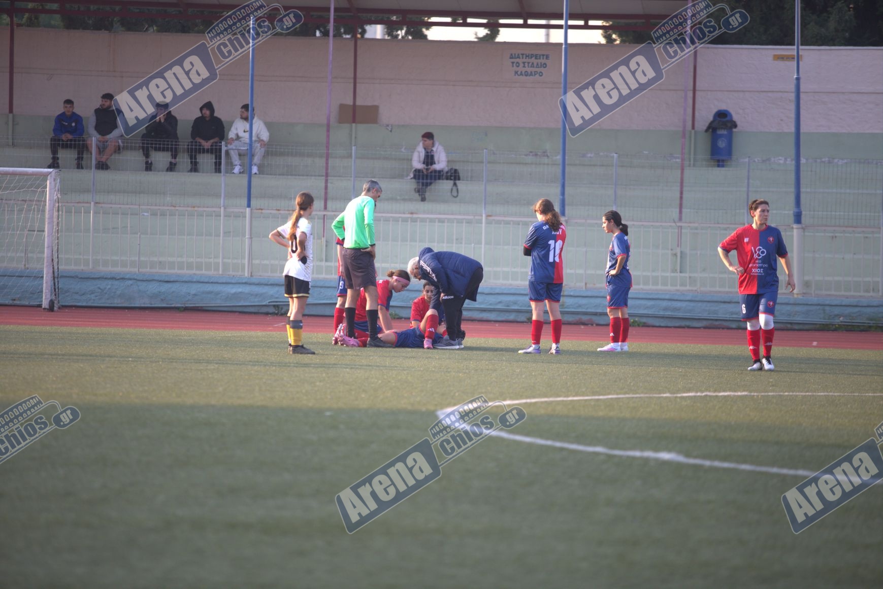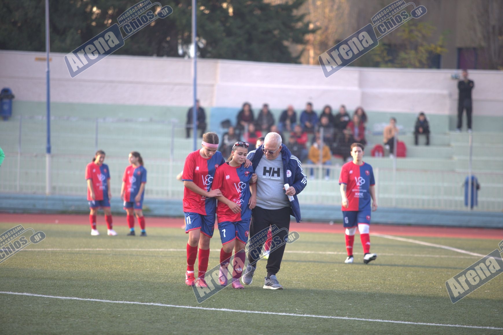 Δεν κατάφερε να συνεχίσει τον αγώνα η παίκτρια του Ολυμπιακού Χίου/Κλασσικό, με τον τραυματισμό της να αποδεικνύεται σοβαρός και να μεταφέρεται στο «Σκυλίτσειο» Νοσοκομείο της Χίου.