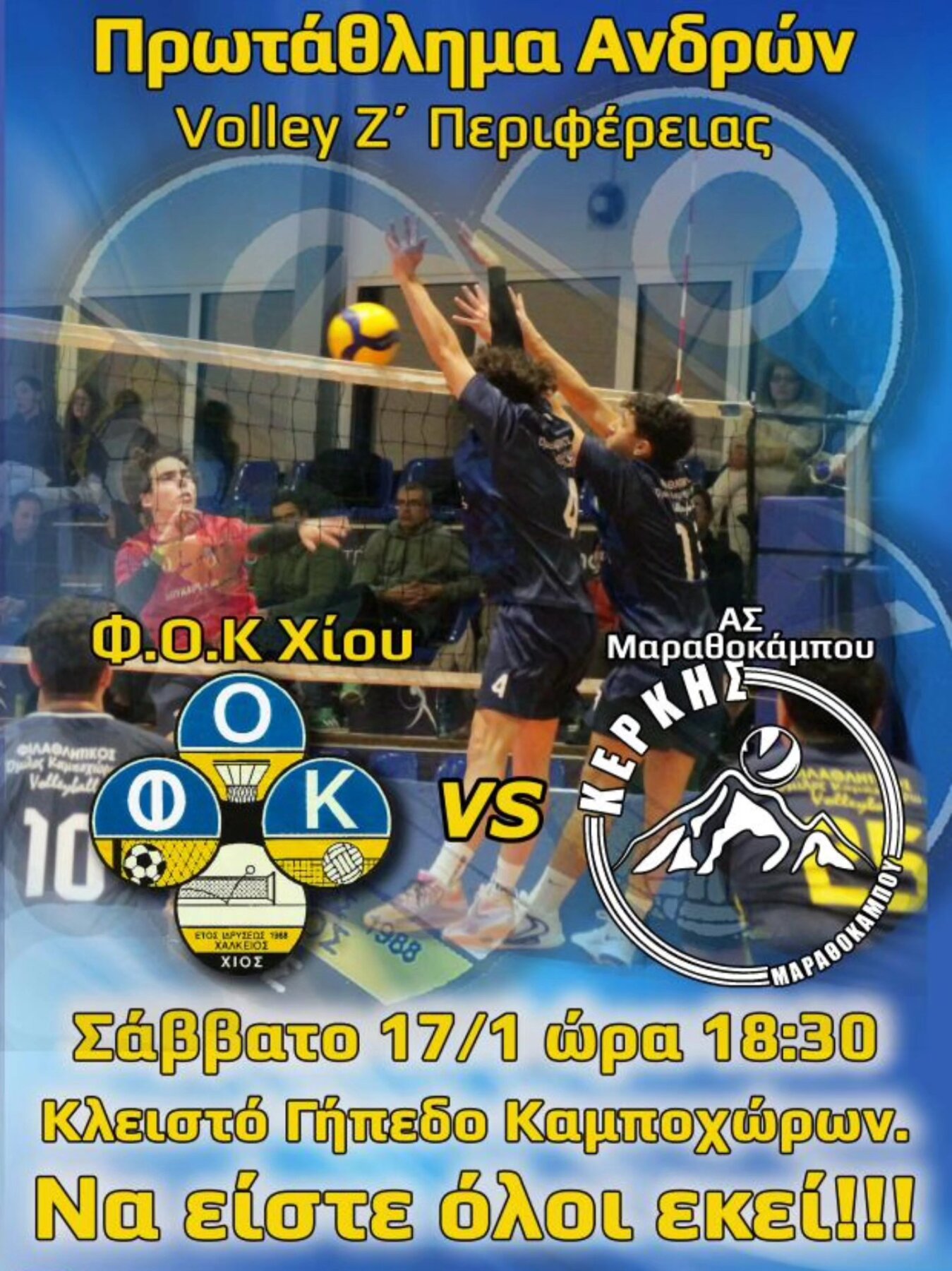 Επιστρέφει μετά από χρόνια το ανδρικό βόλεϊ στο νησί της Χίου και ο ΦΟΚ θα υποδεχθεί στη πρεμιέρα του πρωταθλήματος τον ΑΣ Μαραθόκαμπου Κέρκη από τη Σάμο!