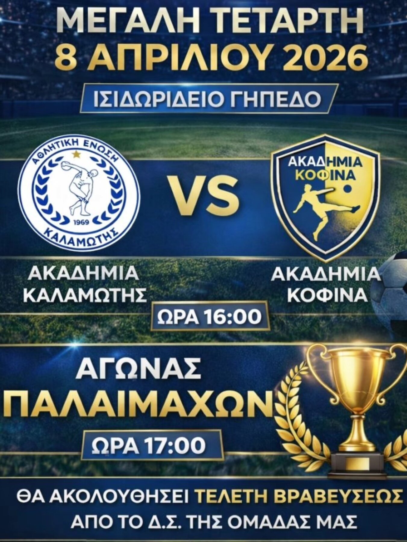 Μια μεγάλη ποδοσφαιρική γιορτή με παρελθόν, παρόν και μέλλον συναντιούνται στο Ισιδώρειο Γήπεδο στη Καλαμωτή!