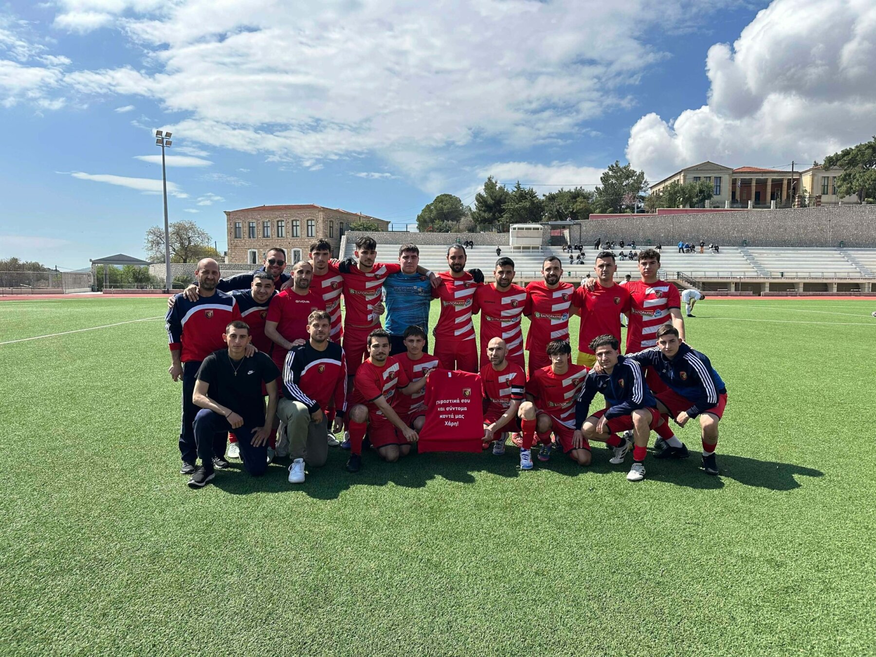 Μάλιστα, οι παίκτες του Λαίλαπα λίγο πριν τον αγώνα της περασμένης Κυριακής με τον Πανοινούσσιο έβγαλαν φωτογραφία στέλνοντας μήνυμα συμπαράστασης στον συμπαίκτη τους, Χάρη Στρατάκη που βρίσκεται εκτός λόγω του τραυματισμού του…