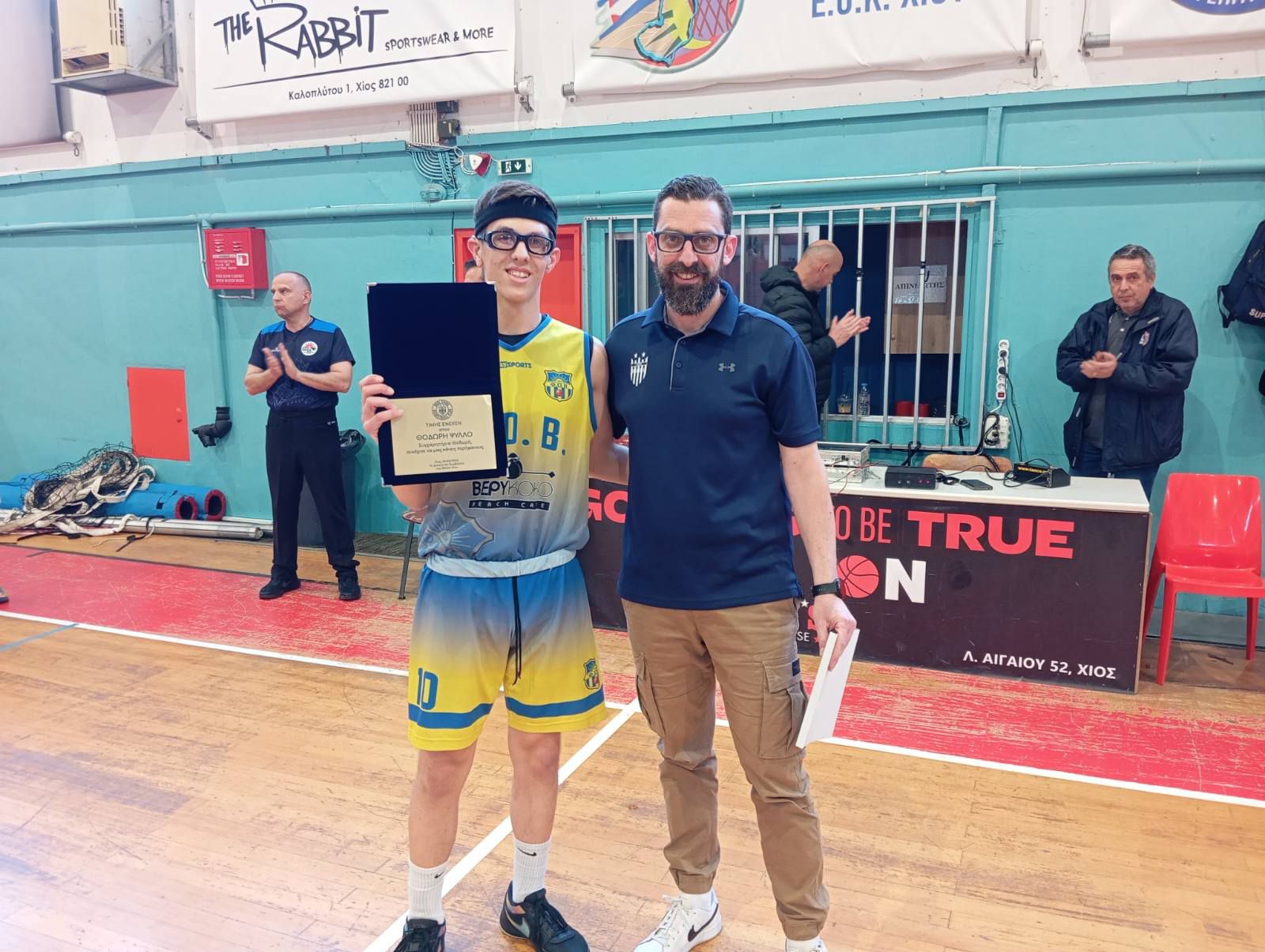Λίγο πριν ξεκινήσει το παιχνίδι της 6ης αγωνιστικής του πρωταθλήματος μπάσκετ Παίδων της ΤΕ Χίου, ο ΒΑΟΛ Χίου παρέδωσε τιμητική πλακέτα στον αθλητή του ΦΟΒ, Θοδωρή Ψύλλο!