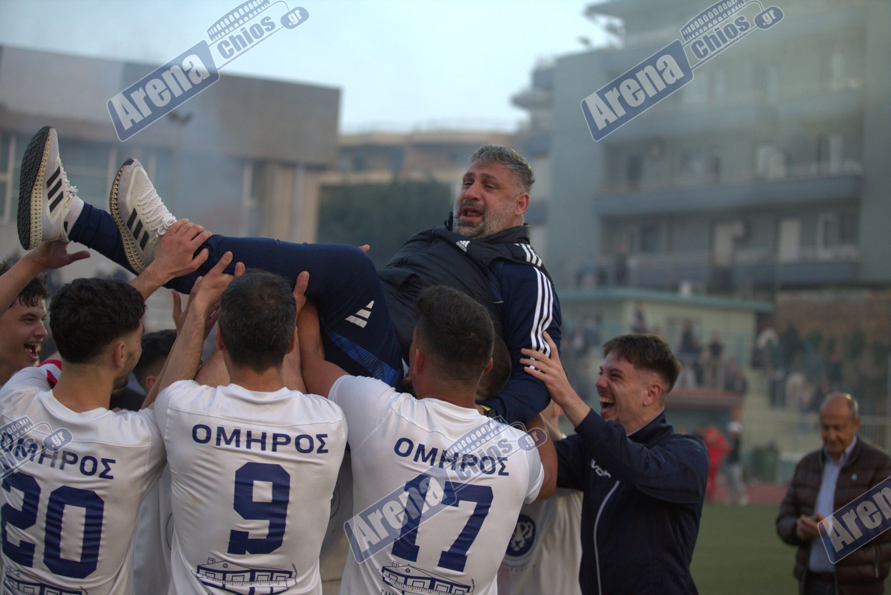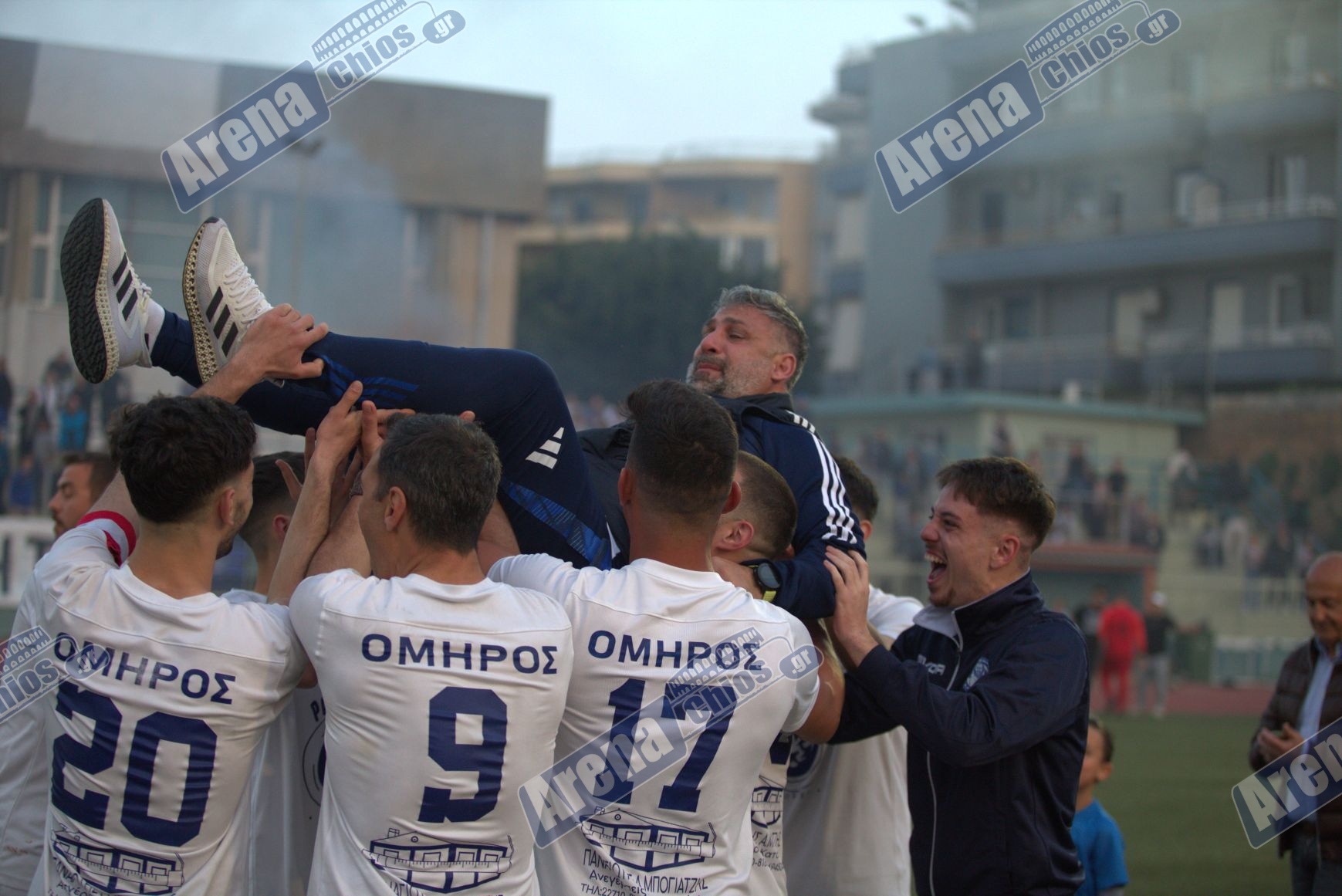 Οι παίκτες της ομάδας στους ξέφρενους πανηγυρισμούς σήκωσαν ψηλά τον Σταμάτη Παλαύρα αποθεώνοντας τον για το σπουδαίο επίτευγμα της ομάδας τους!